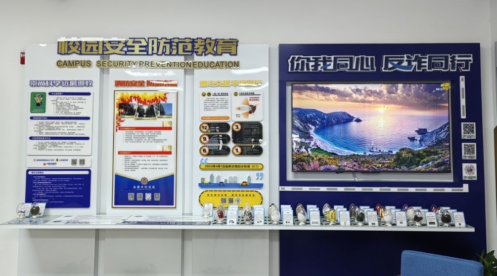 保卫处依托校园安保联指中心(警务站)与公安禁毒部门加强联动,深入参与禁毒综合治理,接处警大厅内专门布设禁毒宣传角,常态化抓实禁毒宣传教育工作,警校合力共筑禁毒防线。