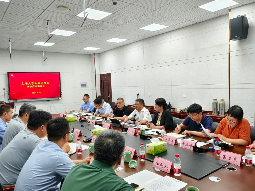 6月29日下午,上海大学绍兴研究院院长李爱军、书记陈仲冬等一行8人来我校开展校院合作洽谈。校党委副书记沈赤,地方服务与合作处、数理信息学院、化学化工学院等相关负责人和教师代表参加座谈会。