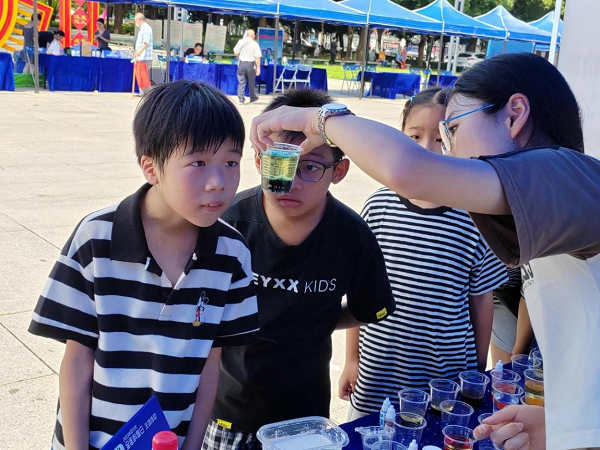 9月17日,我校化学化工学院积极参与由绍兴市科协等14个部门在绍兴城市广场联合举办的全国科普日主题市集活动。化学与新材料科普基地志愿者们在科普活动中开展了“光的形状”“海中花园”“掌中红绿灯”等趣味化学实验,激发青少年对科学的好奇与热爱。