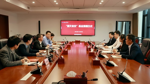 沈赤代表学校向蓝天膳食服务有限公司在学校的发展过程中所作出的贡献表示感谢,对设立基金用于保障食堂一线员工健康安全的义举表示感谢,希望学校相关职能部门在基金的使用过程要始终坚持管理好、使用好、弘扬好的原则,充分体悟蓝天膳食服务有限公司辛勤付出的这份情,把这份付出运用到我们凝练学校文化以及整个教书育人的各个环节中。