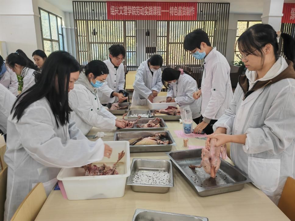 为传承绍兴传统美食文化,提升学生的劳动技能,近日,学校资产与后勤管理处组织开展了绍兴传统美食制作的劳动实践活动。60余名学生在食堂大厨的精心指导下,学习了解了绍兴酱鸭、鳊鱼干、嵊州小笼包、绍式春卷等美食制作,用自己亲身实践去感受绍兴传统美食文化。