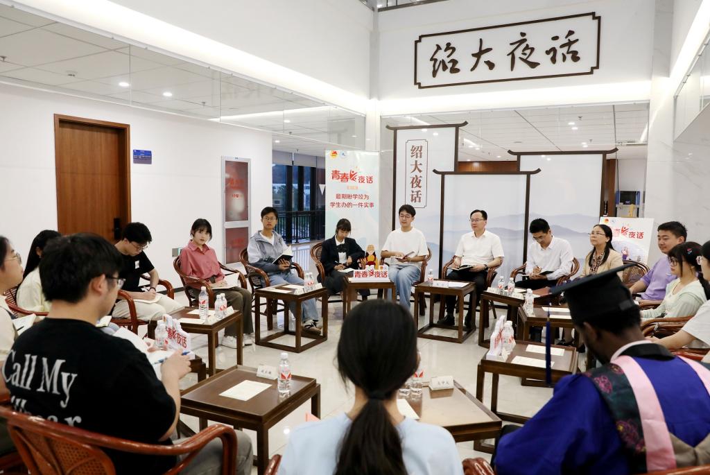 6月17日晚,“绍大夜话”第八期之“青春夜话”第六期在行政楼三楼中庭举行。校党委副书记张宏与本硕学生、留学生代表面对面亲切交谈,深入了解学生的需求和期待。