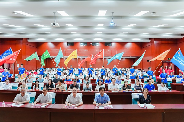 7月8日下午,我校2024年暑期社会实践活动出征仪式在南山校区7号楼报告厅举行,校党委副书记黄坚,党委委员、宣传部部长宋浩成,保卫处、团委、马克思主义学院、国际教育学院等部门、学院负责人,各学院党委副书记和团委书记,暑期社会实践团队师生代表等260余人参加活动。
