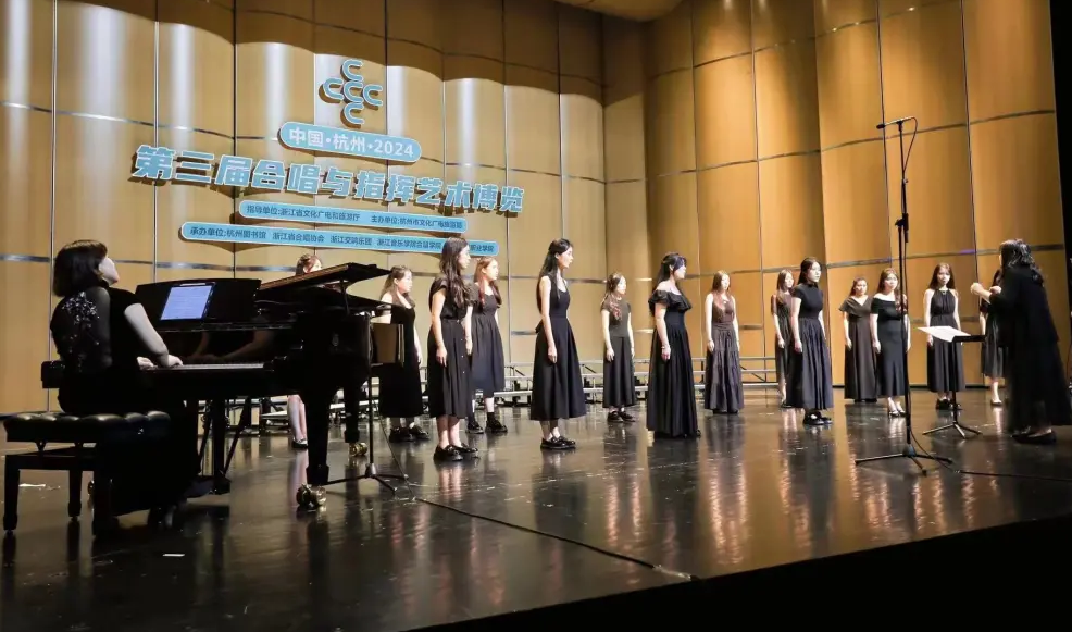 近日,由浙江省文化广电和旅游厅指导,杭州市文化广电旅游局主办的“最美歌声献给党——第三届合唱与指挥艺术博览”在杭州金沙湖大剧院落下帷幕。经过初赛、复赛多轮角逐、层层评选,我校室内乐小合唱团从全国68支参赛合唱团、11个组别中脱颖而出,获小合唱组金奖,并进入5支金奖合唱团总冠军争夺赛。指挥许芳老师获优秀指挥奖。本次合唱比赛由我校许芳老师担任指挥,曾文幸老师担任钢琴伴奏,演唱的曲目分别为《踏莎行》《Song Of Miriam》。