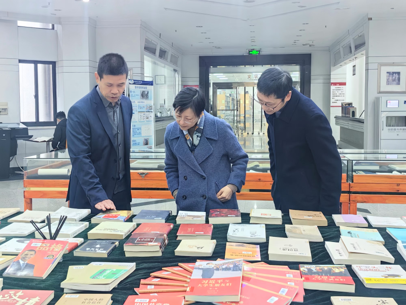 12月24日上午,校纪委书记、监察专员唐晓青在纪委副书记、纪检监察室主任封国强的陪同下到图书馆参观“书香廉韵 清风领航”馆藏廉洁文化主题书展。